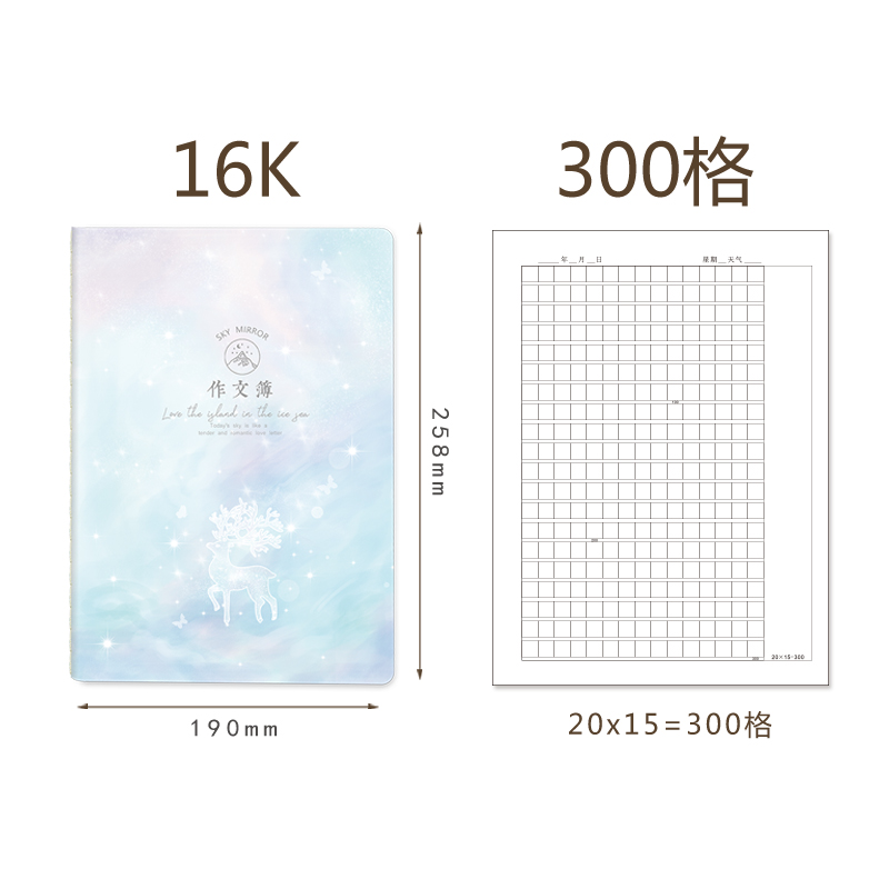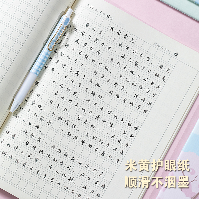 四方伙伴作文本加厚300格大格255格作文簿16K方格清新大号3-6年级小学生作文本初中生高中生作业本厚作文薄