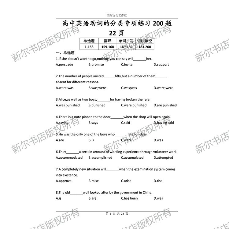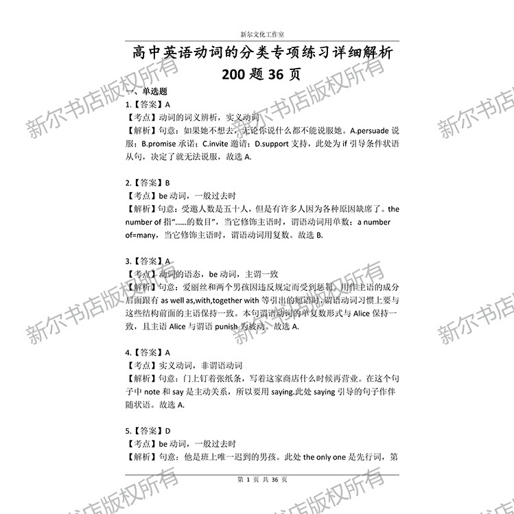 高中英语动词的分类专项练习册200题通用版高考含详细解析58页
