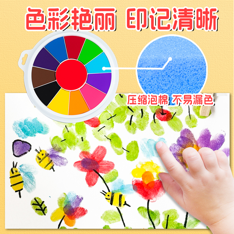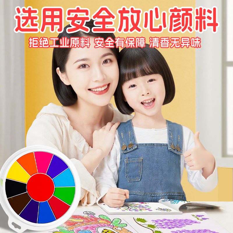 儿童手指画彩色印泥盘拓印颜料绘画涂鸦印台指纹印泥画册幼儿园印尼小学生手掌印泥多色纪念24色工具套装紫色
