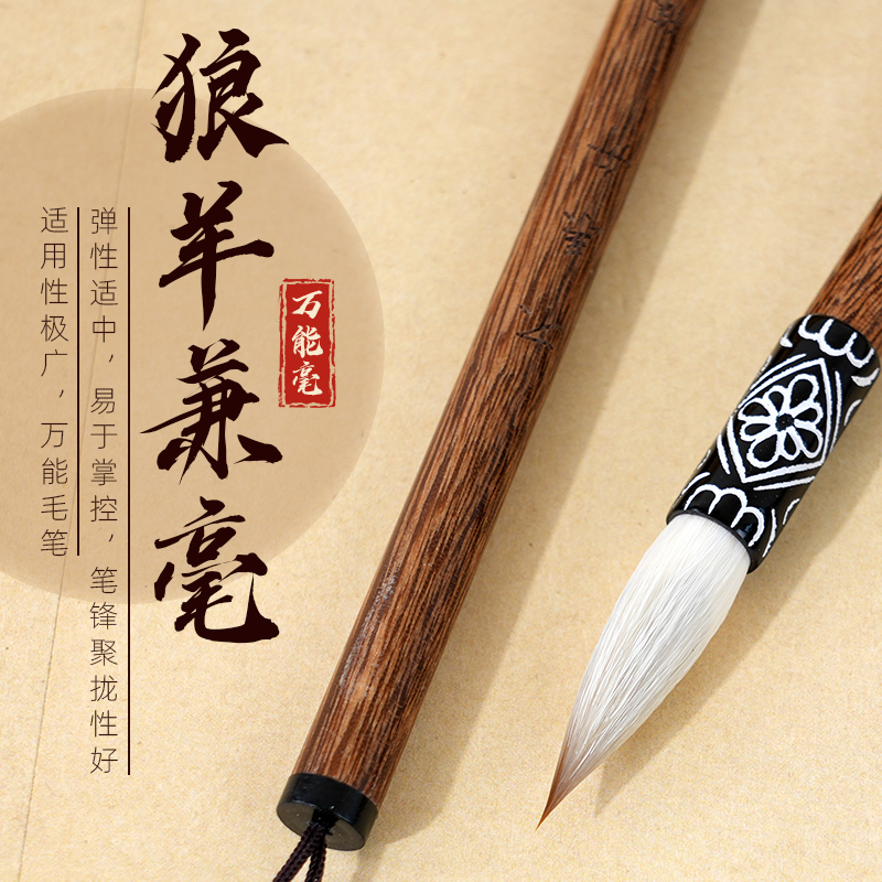 轩义堂羊毫毛笔书法专用国画中号狼毫羊豪兼毫学生初学者小学生入门楷书大中小中楷大楷儿童画画中锋画笔