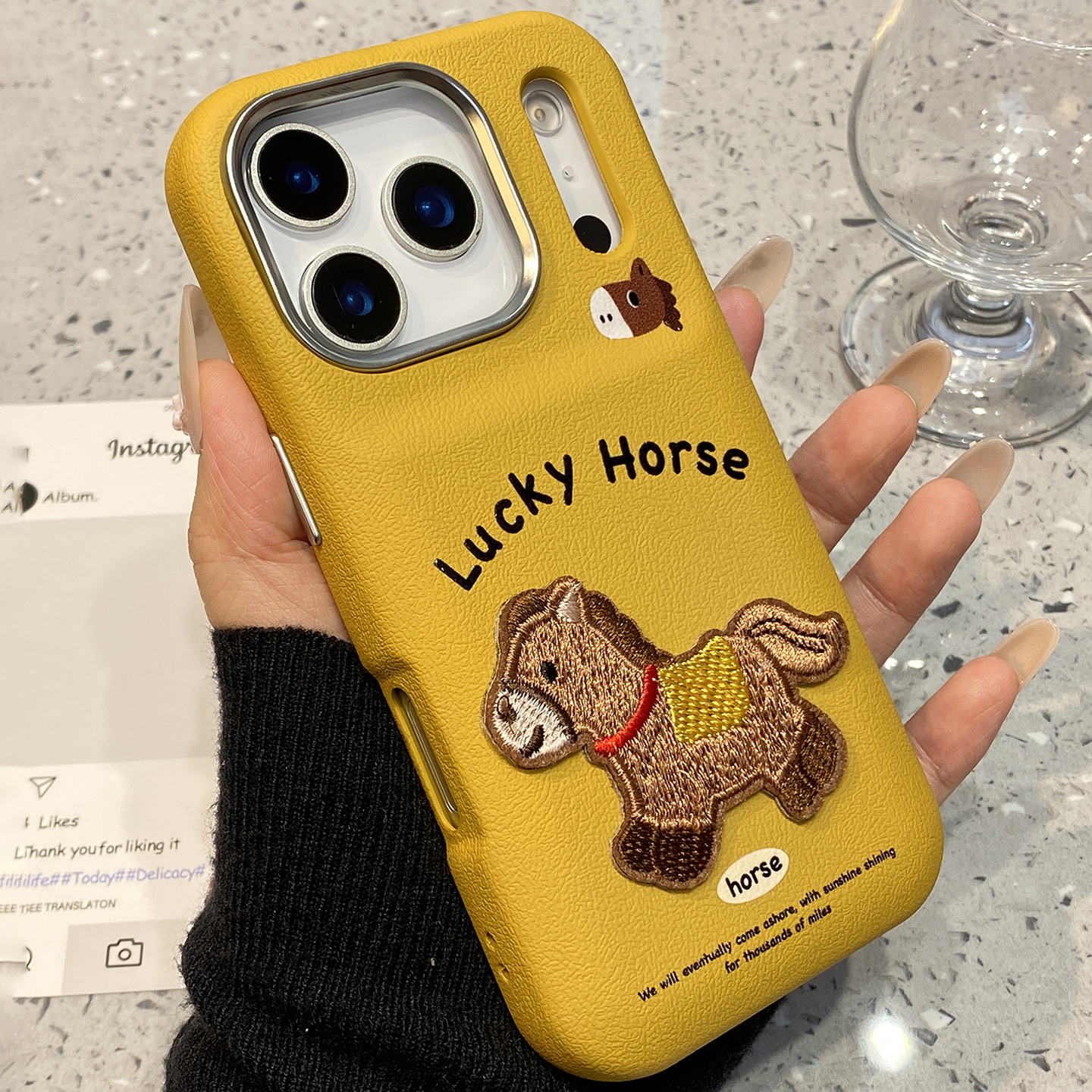 【每日新品】姜黄色刺绣小马适用于苹果15手机壳iphone16保护套14皮质13新款17promax高级16pro创意max手机套