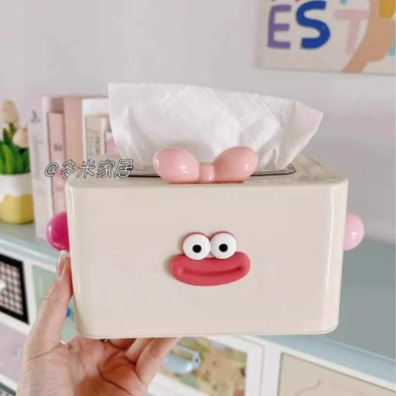 桌面餐巾纸收纳盒卡通奶油风纸巾盒客厅家用茶几创意纸盒弹簧抽盒