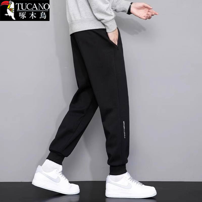 啄木鸟裤子男2025春秋季新款时尚青年加绒加厚束脚直筒休闲卫裤