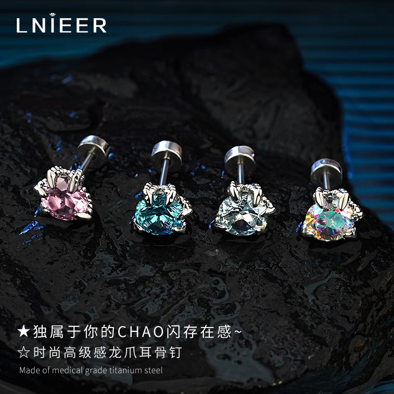 医用钛钢龙爪耳钉男锆石钛合金养耳洞耳骨高级感耳环耳饰医学平底