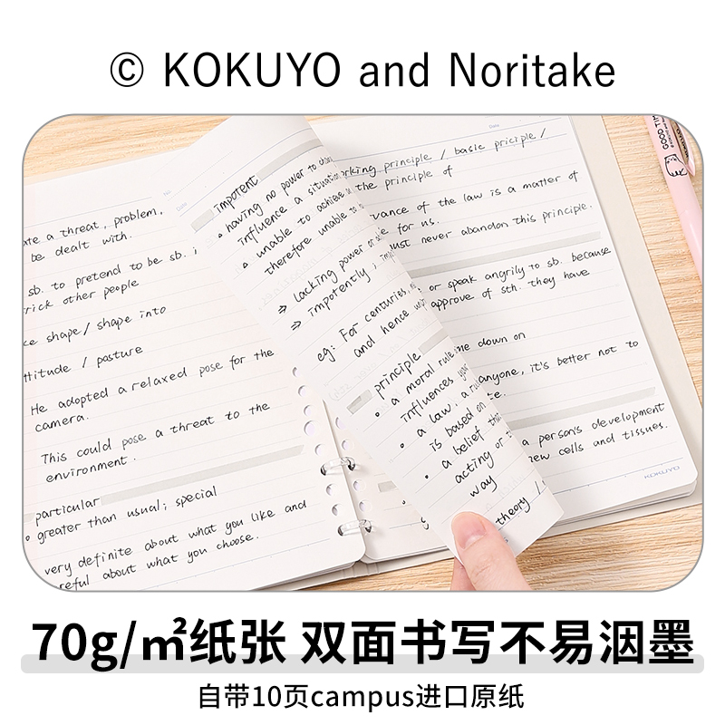日本Kokuyo国誉四孔活页本Noritake联名第三弹笔记本A5可拆卸外壳B5文具记事简约软面抄替芯可换学生用高颜值