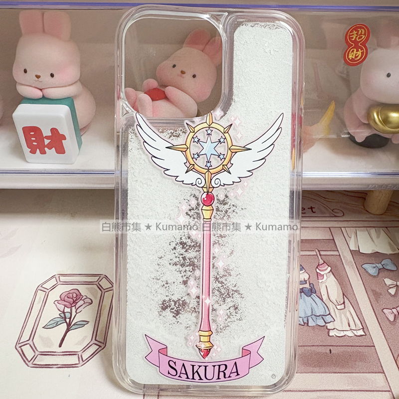 适用iphone16promax手机壳15苹果16透明14流沙13流动12液体11雪花魔卡少女樱小樱星之魔杖女卡通透明保护套软