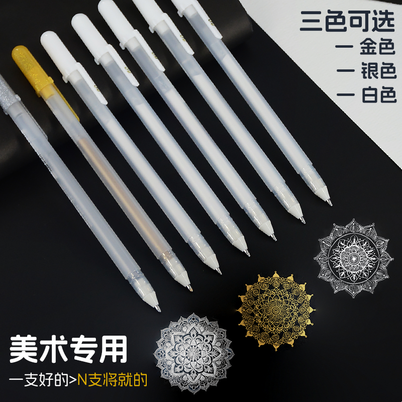 sakura樱花高光笔白笔美术专用勾线笔白色水笔金色记号笔细头银笔