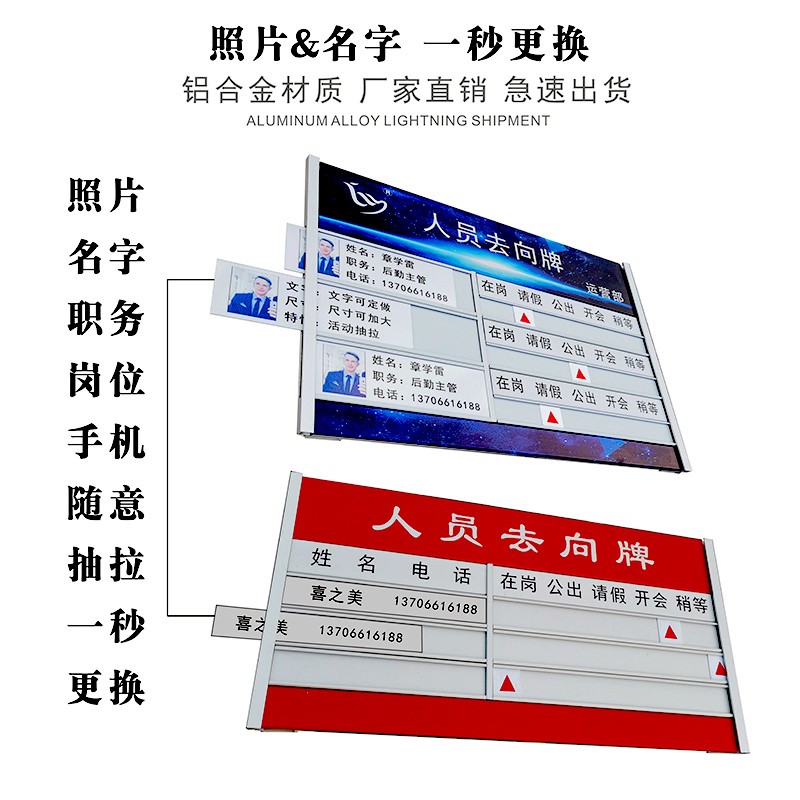 去向牌铝合金 定制带照片办公室门牌可更t换工作人员工去向牌寝室
