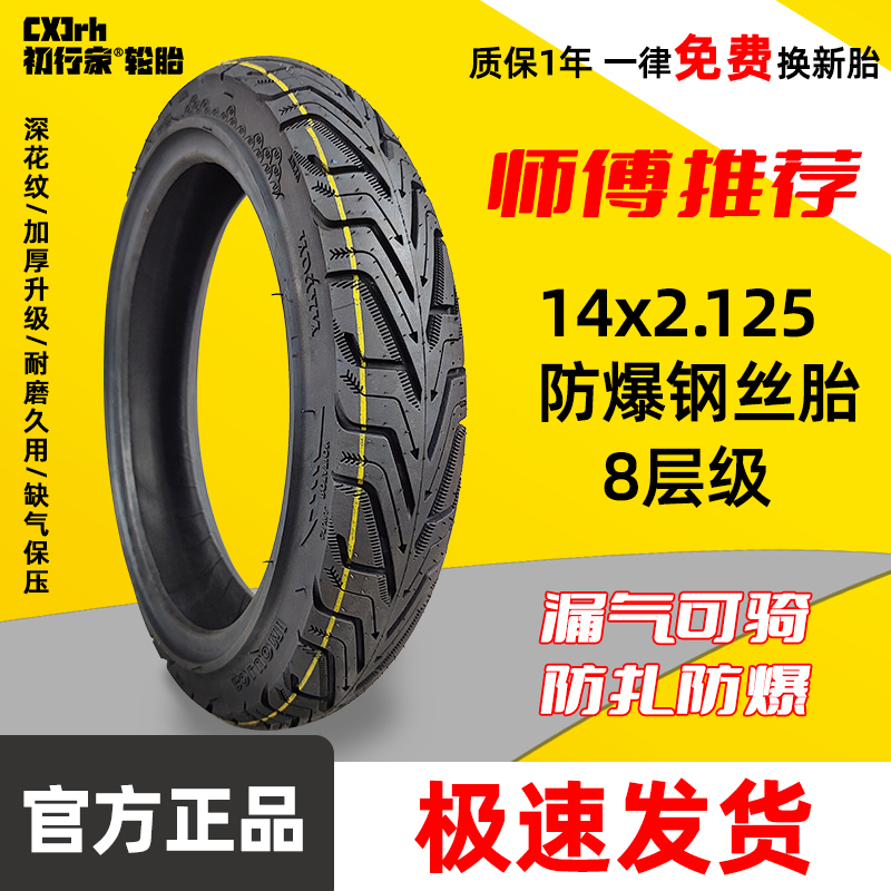 电动车专用轮胎14x2.125/2.5真空胎耐磨抗爆代驾车缺气保用钢丝胎