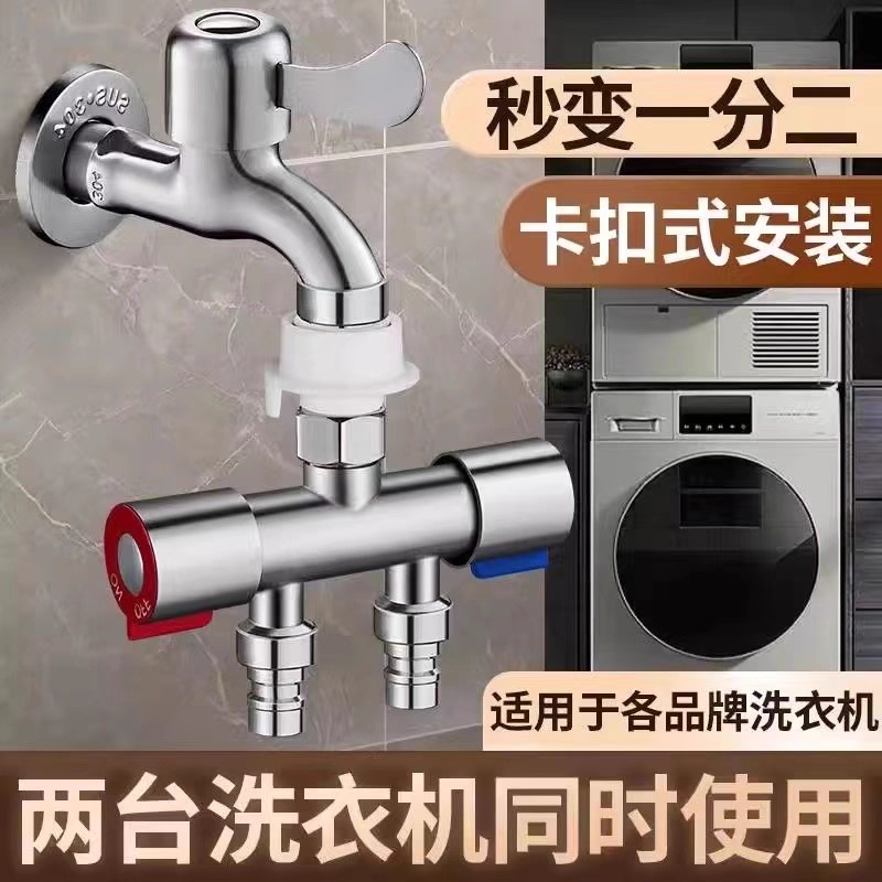 不锈钢分流双控角阀一进二出三通分水阀水龙头一分二分水器带开关