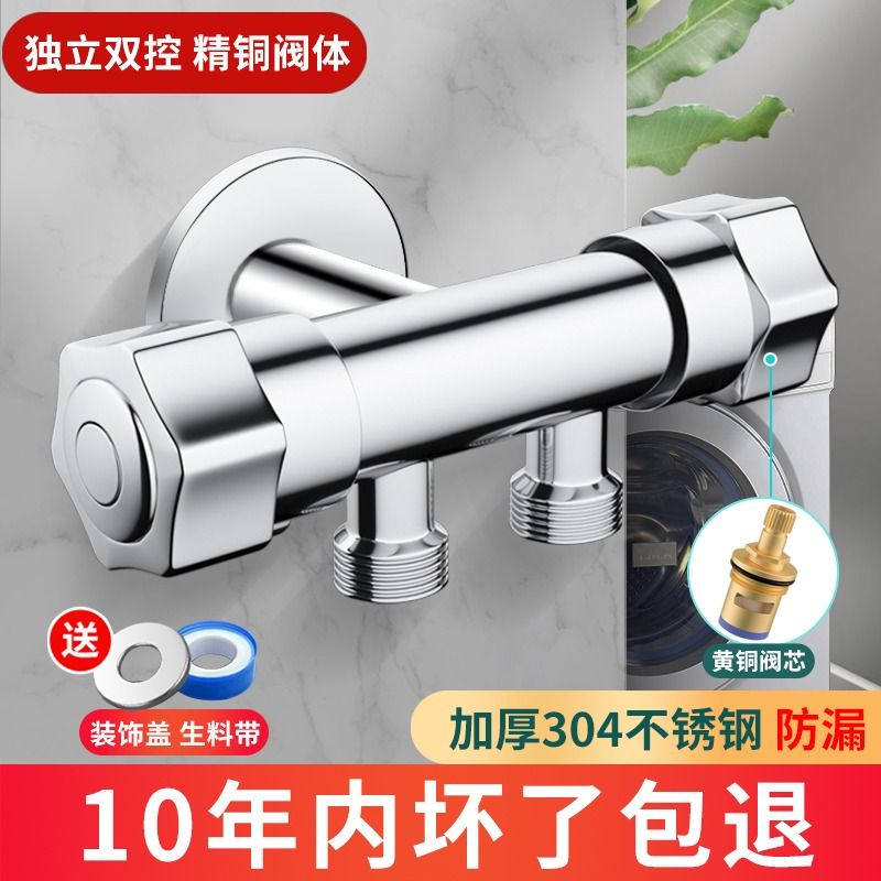 三通角阀全铜一进二出水龙头开关一分二双洗衣机三角阀分水器马桶