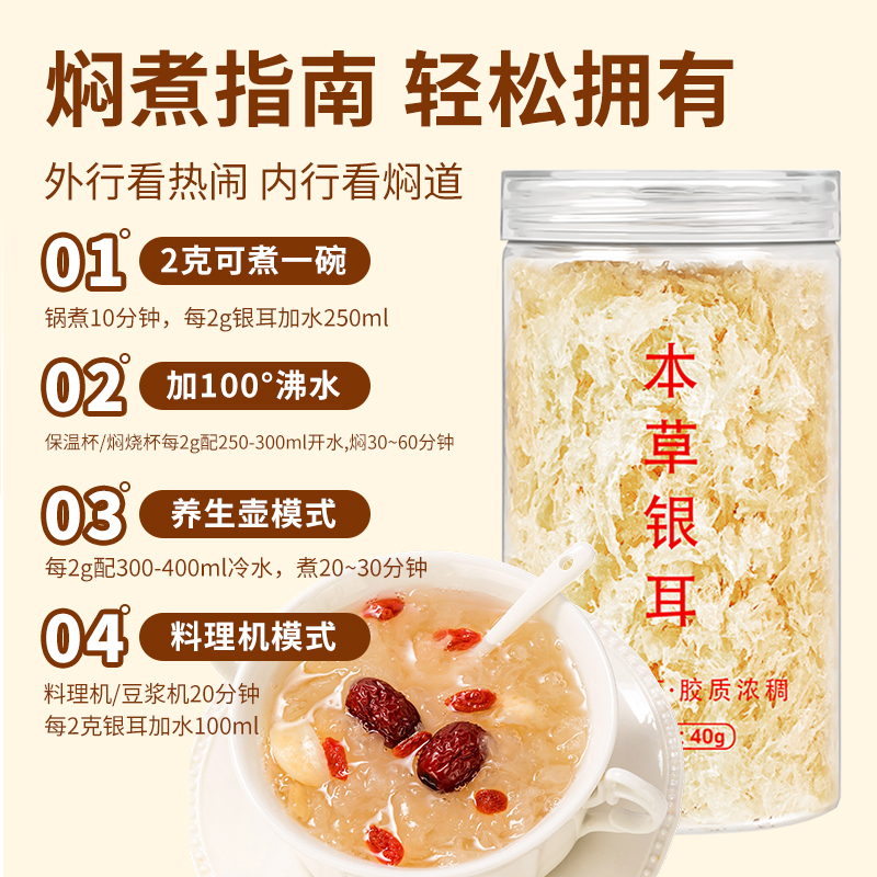 鲜珥家有机本草七白银耳干货免洗即食银耳羹冲泡古田银耳焖烧杯