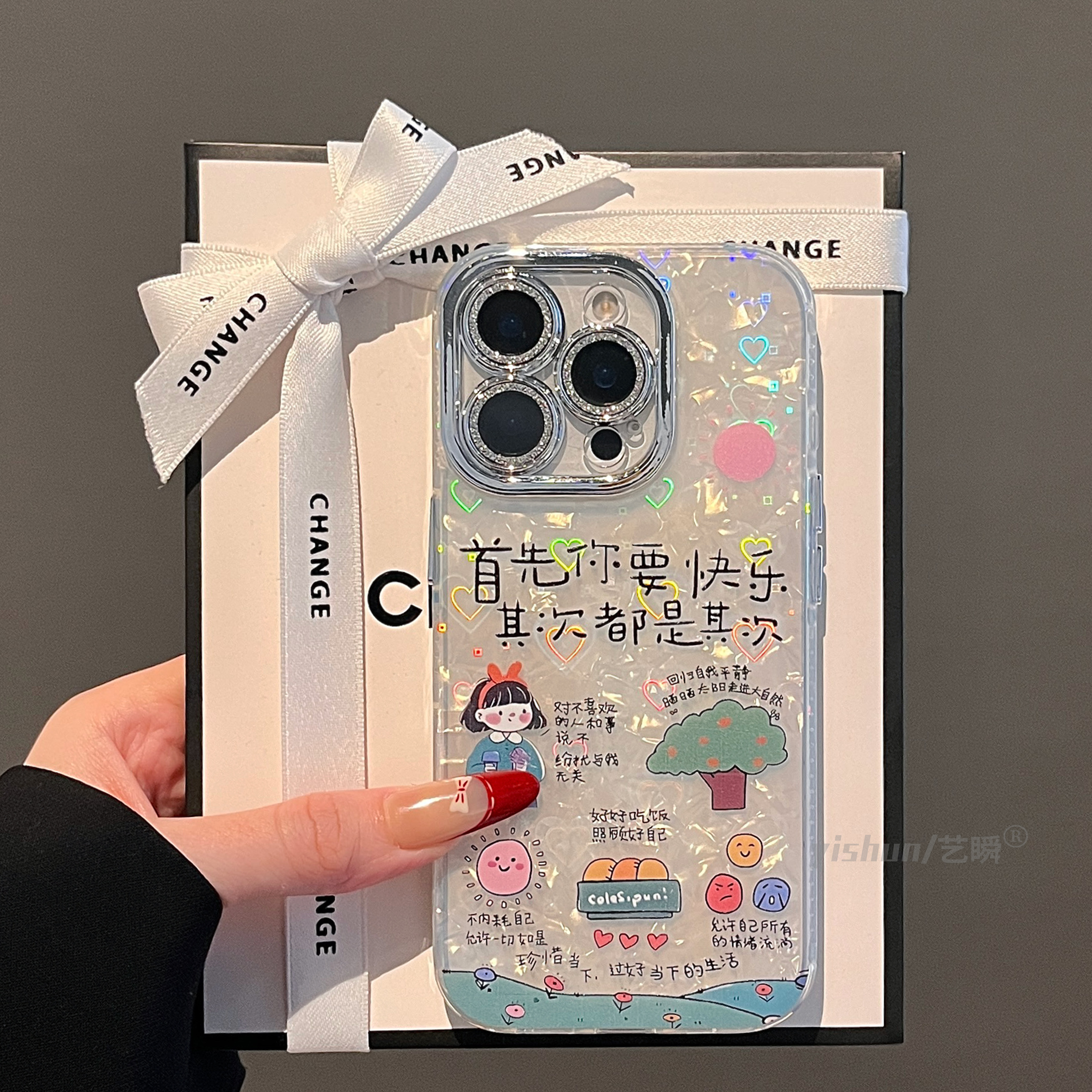 适用苹果16promax手机壳新款简笔画涂鸦文字iphone17首先你要快乐14plus创意个性15女款12pm全包镜头13保护套