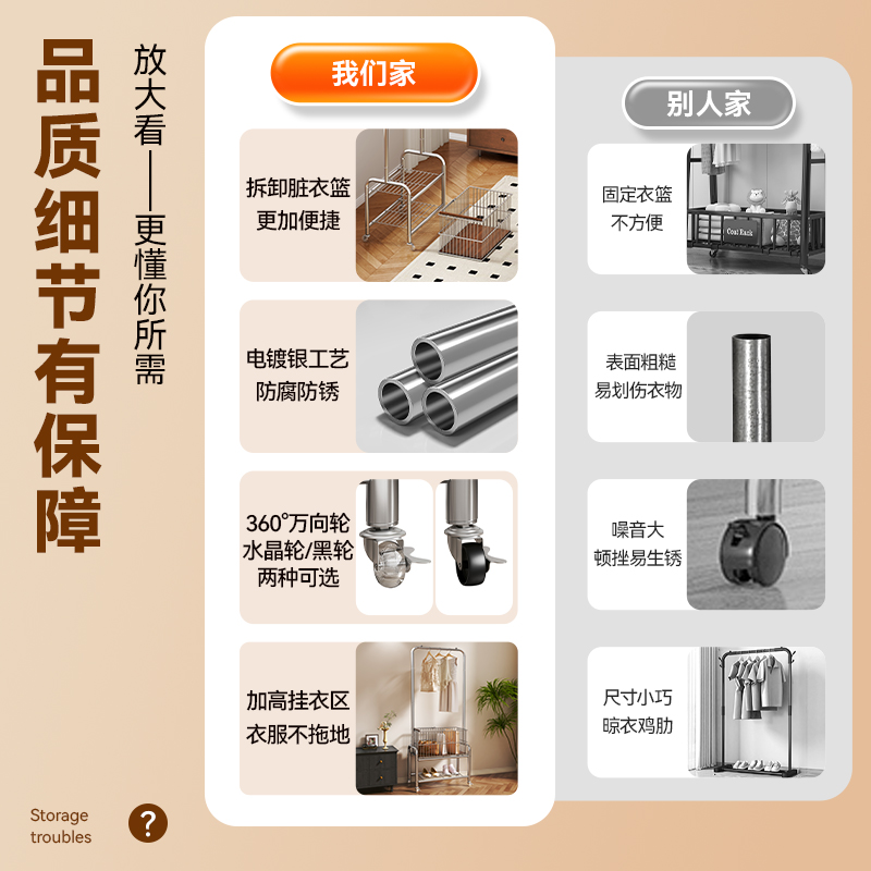 全峰衣帽架落地卧室衣架可移动室内收纳置物架家用晾衣服杆挂衣架