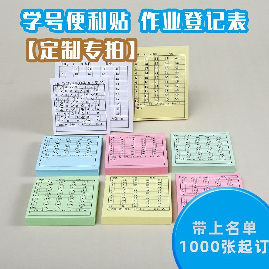 学号便利贴定制交查作业小学初中生专用错题本作业完成情况登记表