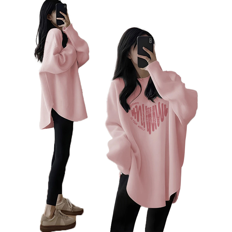 外贸出口捡漏纯棉圆领卫衣秋冬时尚宽松显瘦大码女装减龄打底上衣