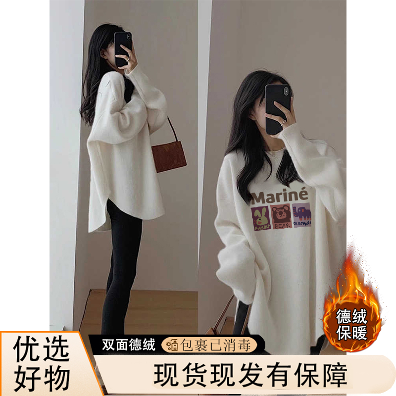 德绒保暖t恤女搭配鲨鱼裤打底衫冬新款大码200斤弧形下摆长袖上衣
