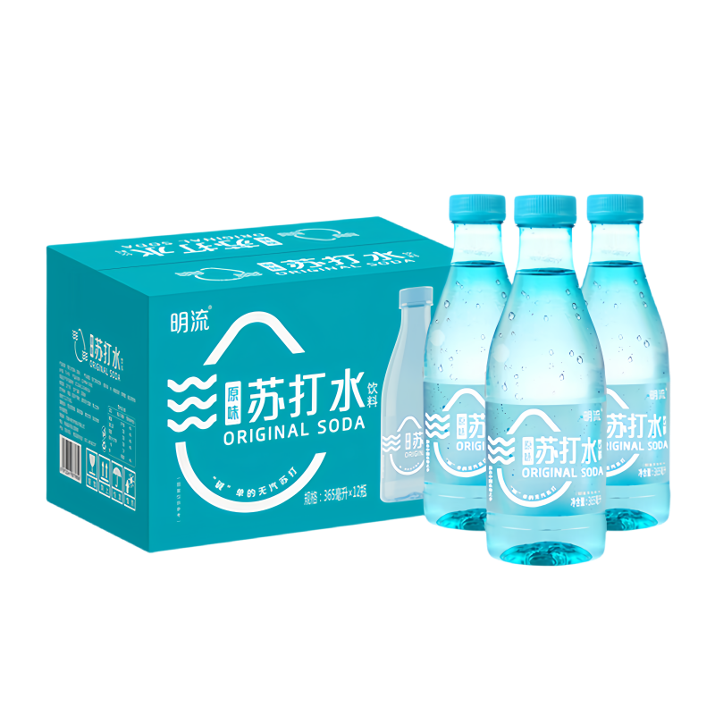 明流苏打水无糖无气弱碱性饮用水原味饮料365ml*12瓶装