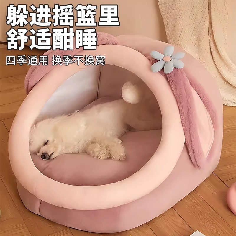 比熊狗窝四季通用中小型犬狗狗睡觉的床宠物房子夏天半封闭电热