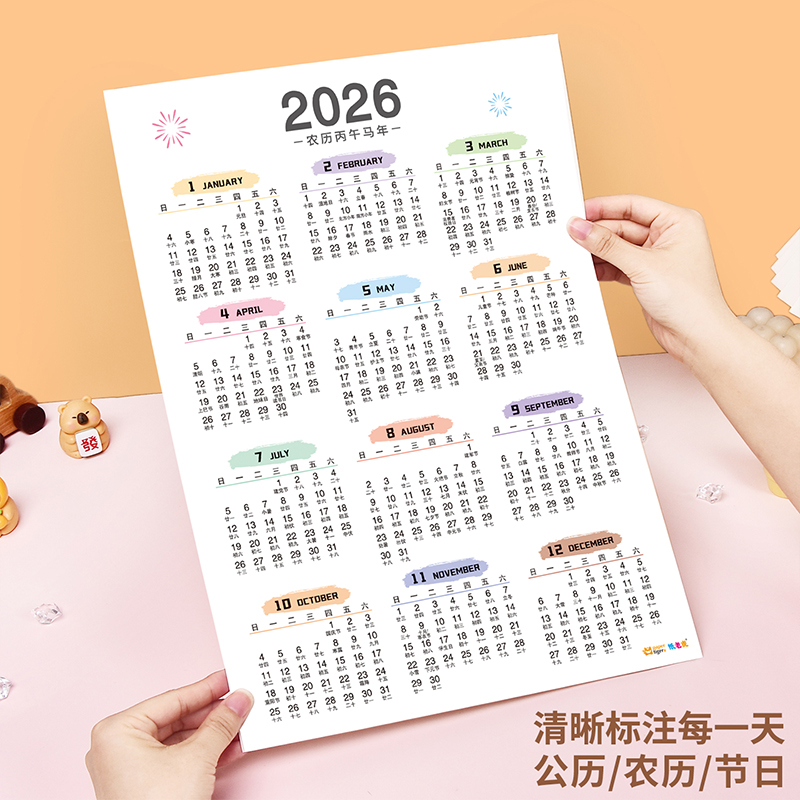 2026年日历马年年历卡片单张全年日历纸可贴墙面垫桌面台历整年12月一张挂历万年历简约记事打卡月计划日程表