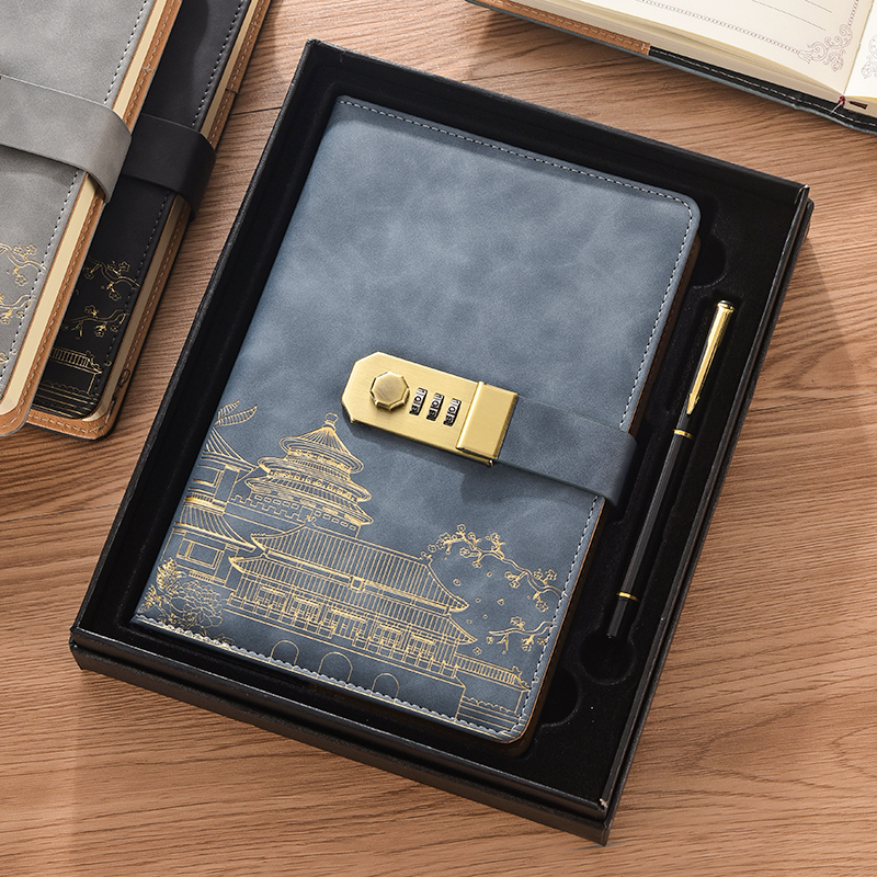 国潮ins密码本带锁日记本密码锁简约文艺复古少女心日记本大中小学生精致笔记本版创意笔记本手账本加厚古风