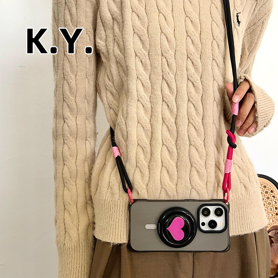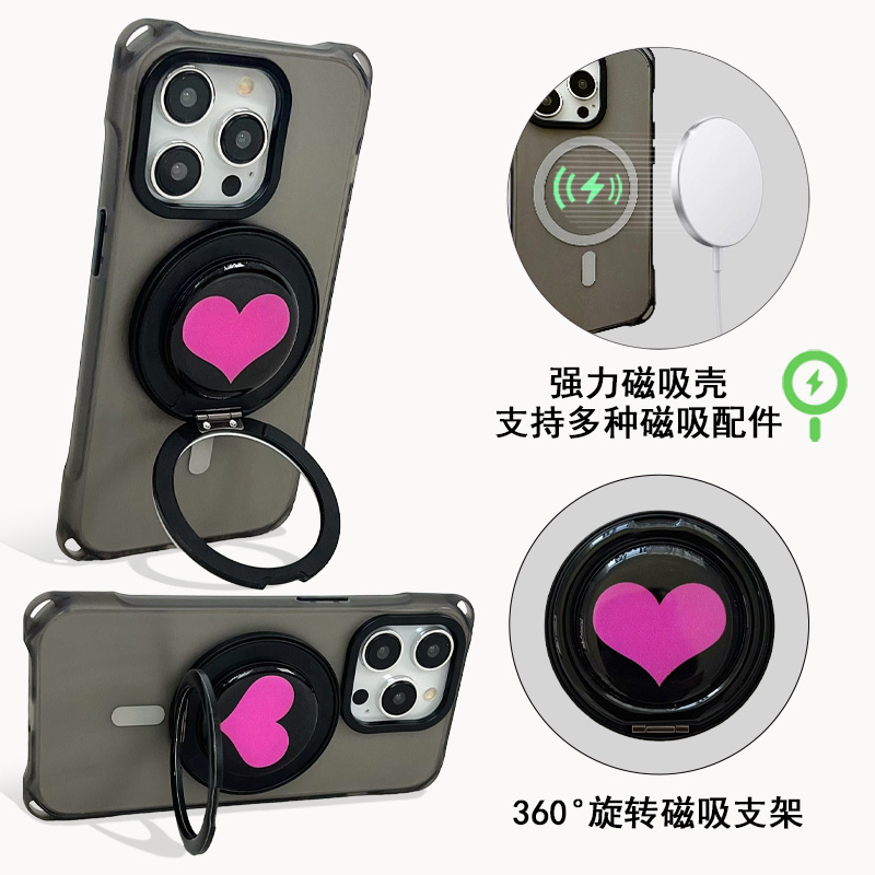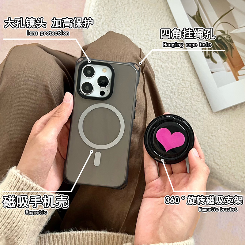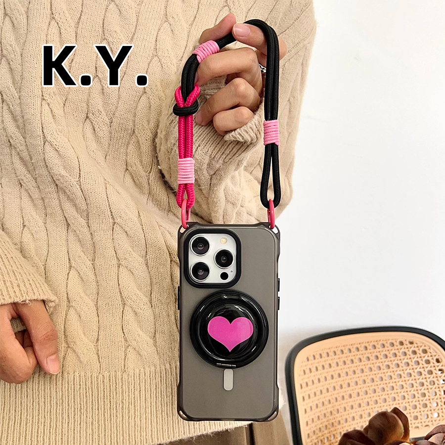 高级感爱心磁吸手机壳带挂绳斜挎可背适用苹果16PROMAX华为mate60pro四角开孔vivoX200手提防摔PURA70PRO硬壳