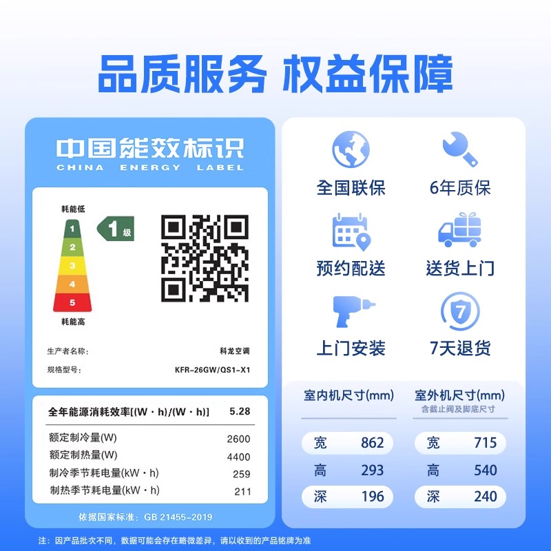 海信科龙空调静省电26QS大1匹新一级能效家用挂机以旧换新补贴101
