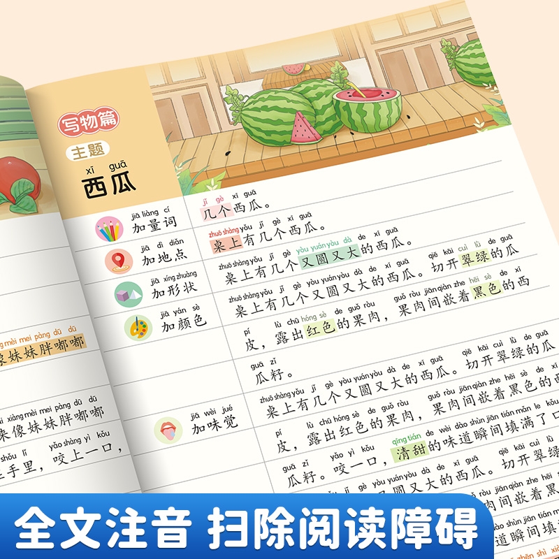 专项训练扩句法写作文五感法小学生通用一二年级看图说话写话三四五六加词修辞扩句法每日晨读优美句子积累好词好句好段写作文素材