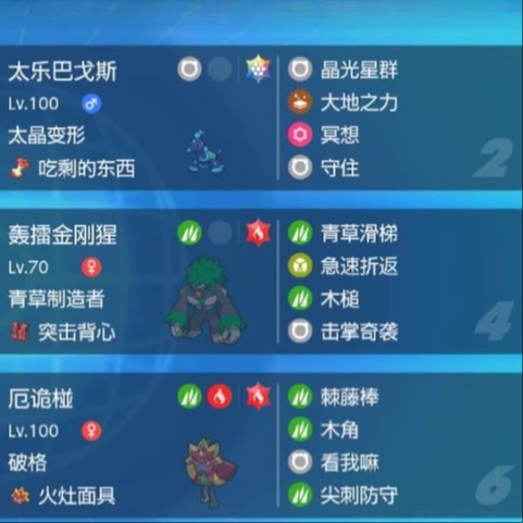 switch宝可梦朱紫规则I双打队伍蕾冠王太乐巴戈斯虎猩队6元一队