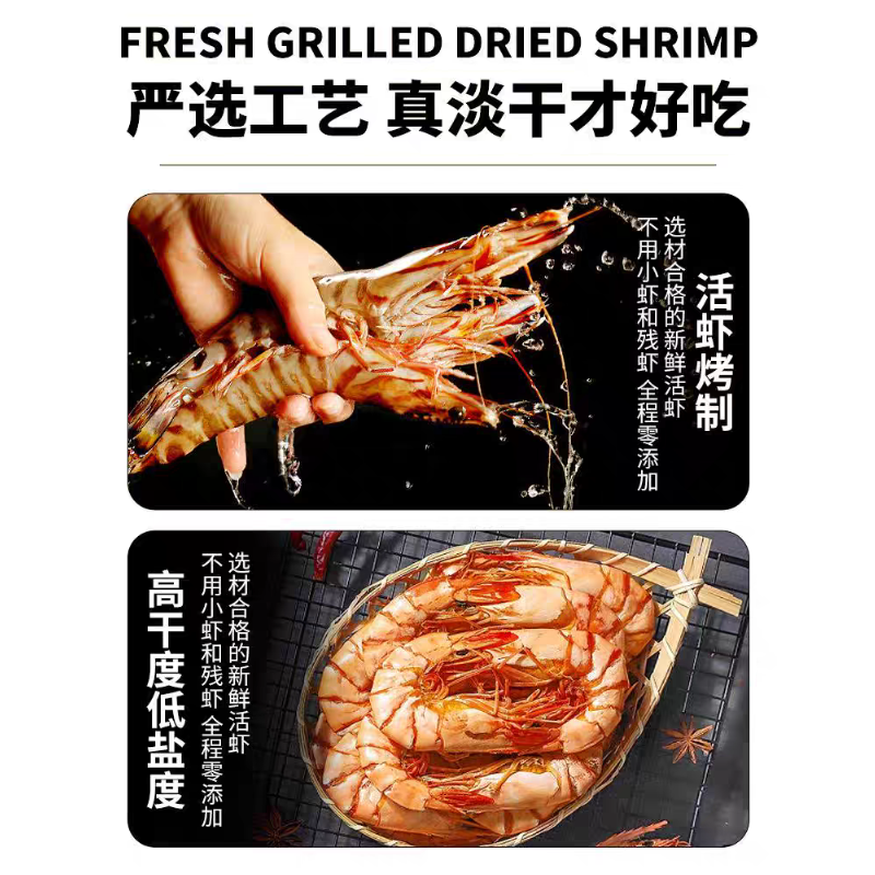 九节虾干即食特大烤虾干开袋即食大虾对虾斑虾海鲜干货孕妇零食A2