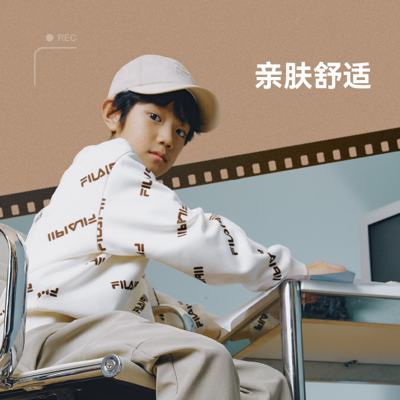 FILA斐乐儿童加绒老花套头卫衣2025年冬季新款男女童圆领满印上衣