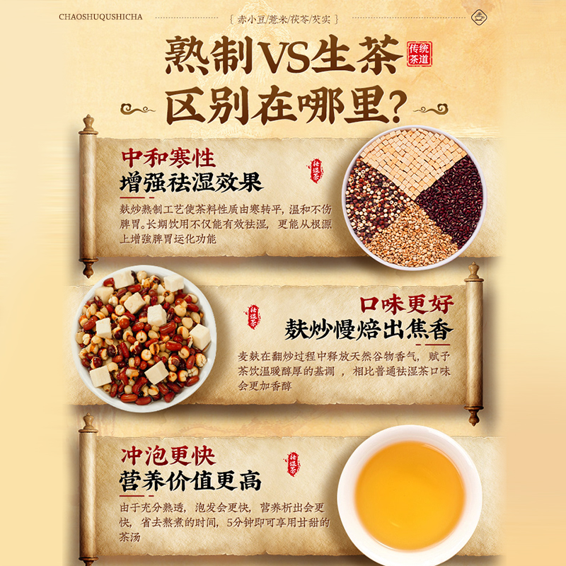 炒熟薏米赤小红豆茯苓芡实祛湿三伏天养生茶饮官方旗舰店三蒸脾胃