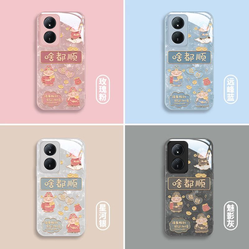 适用荣耀畅玩50plus手机壳玻璃CLK-AN00啥都顺5g华为play8t保护套anoo全包边pius防摔5g新年款财神喜庆高级女