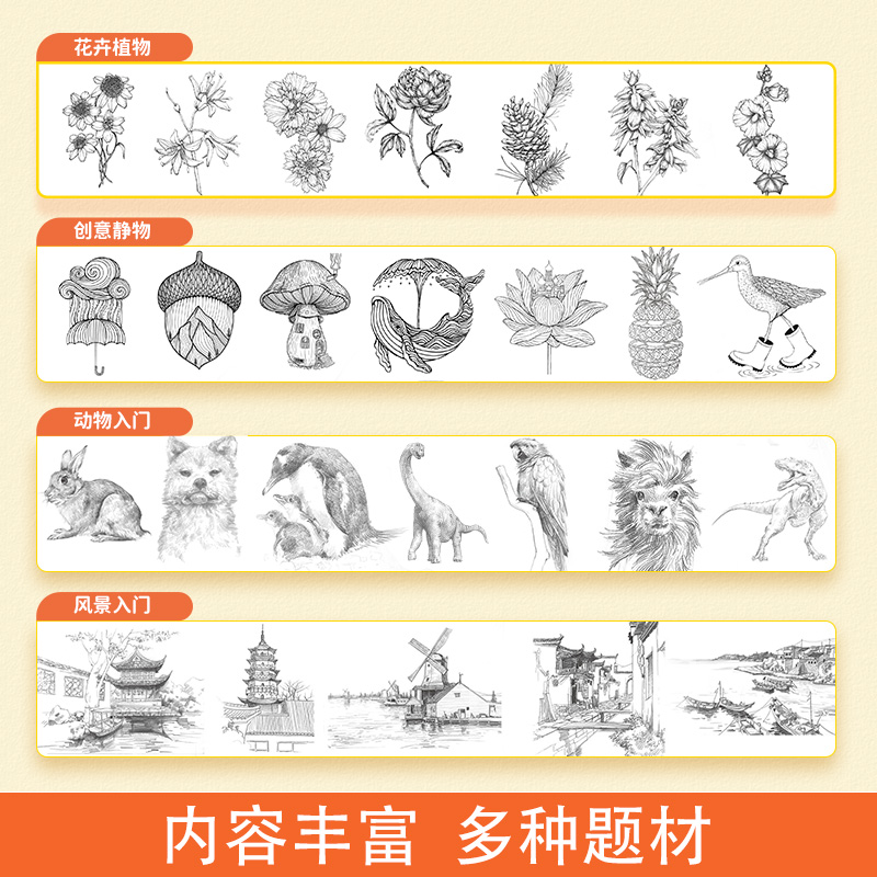素描画册临摹本静物创意动物花卉风景线稿漫画手绘描摹本线描白描画本铅笔画漫画入门自学零基础练习册画画本