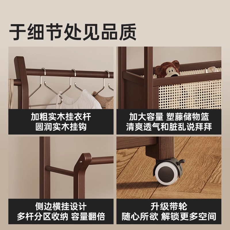 实木衣架落地衣帽架卧室脏衣篓挂衣架可移动家用挂包架置物组装