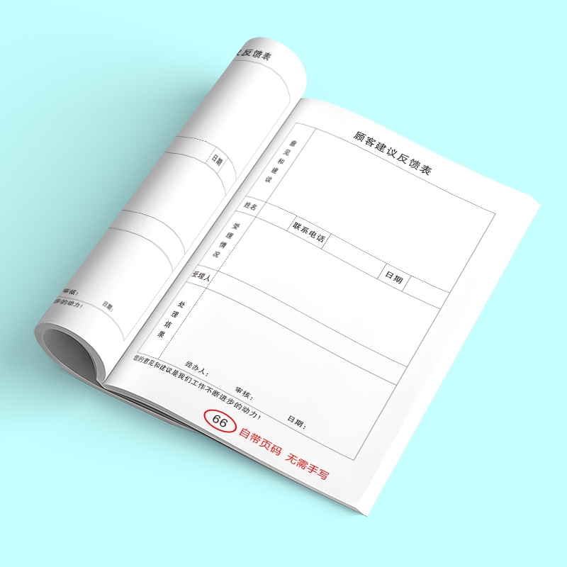 顾客建议反馈表记事本客户意见登记本客户意见反馈记录本餐饮饭店售后单意见本客户投诉信息登记册簿笔记本子