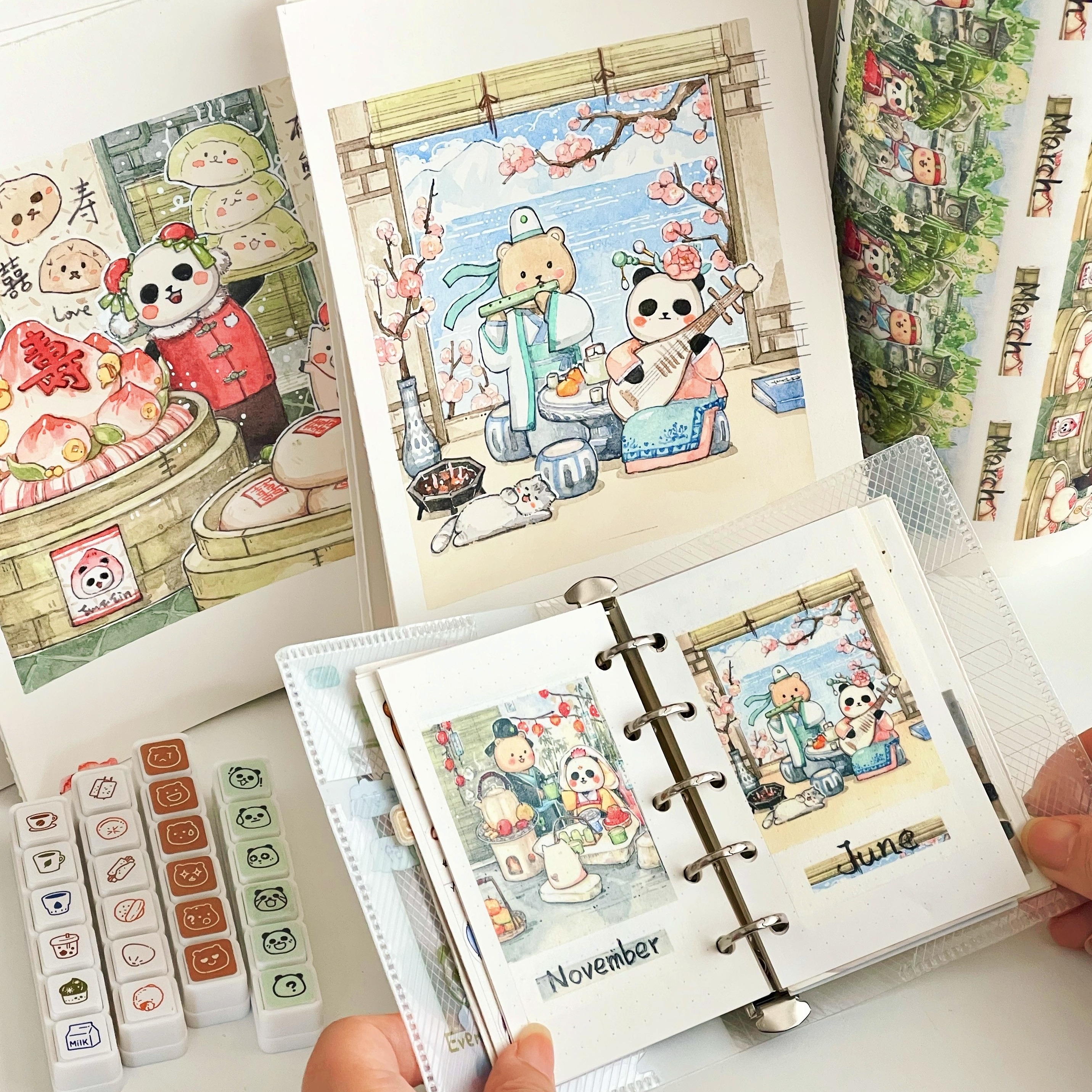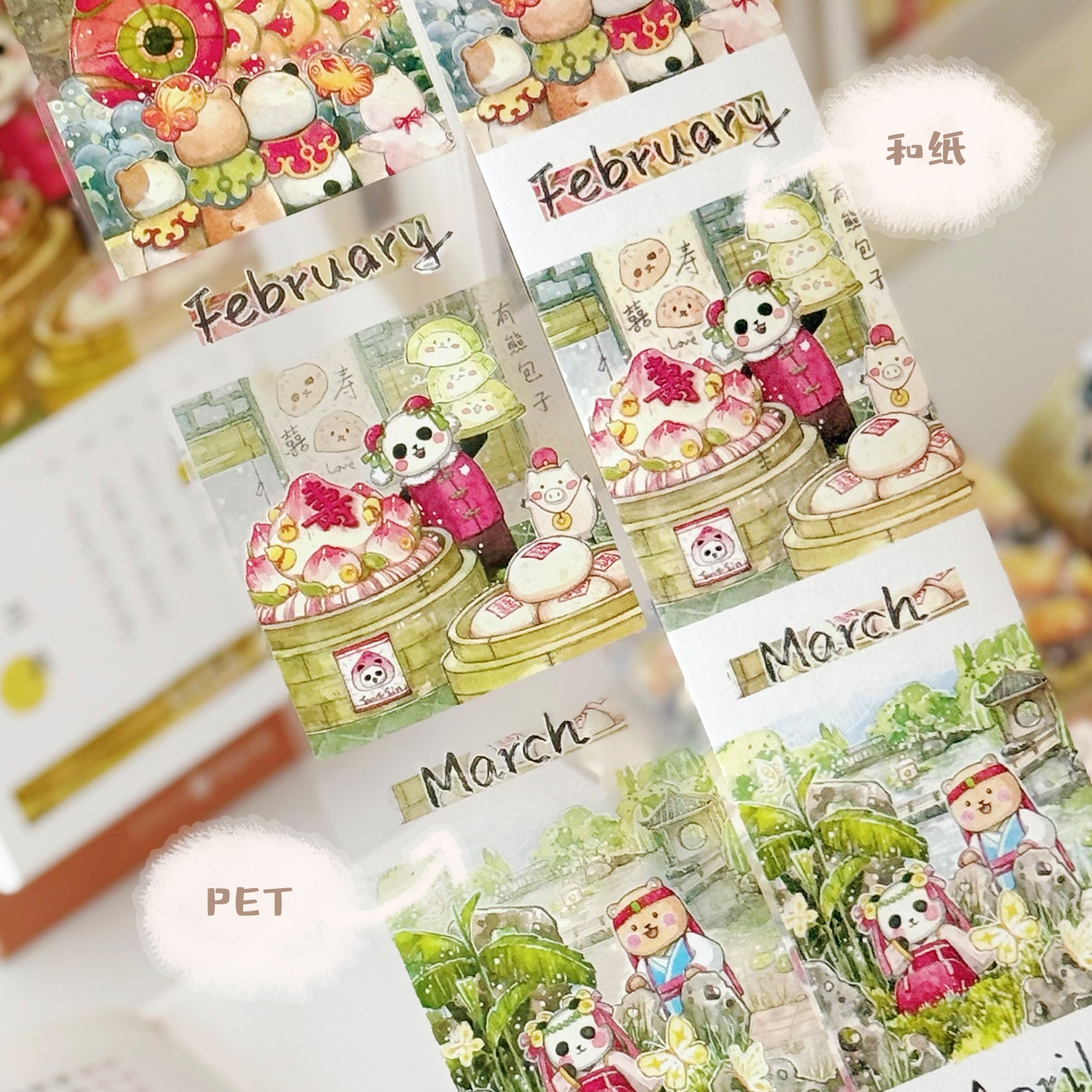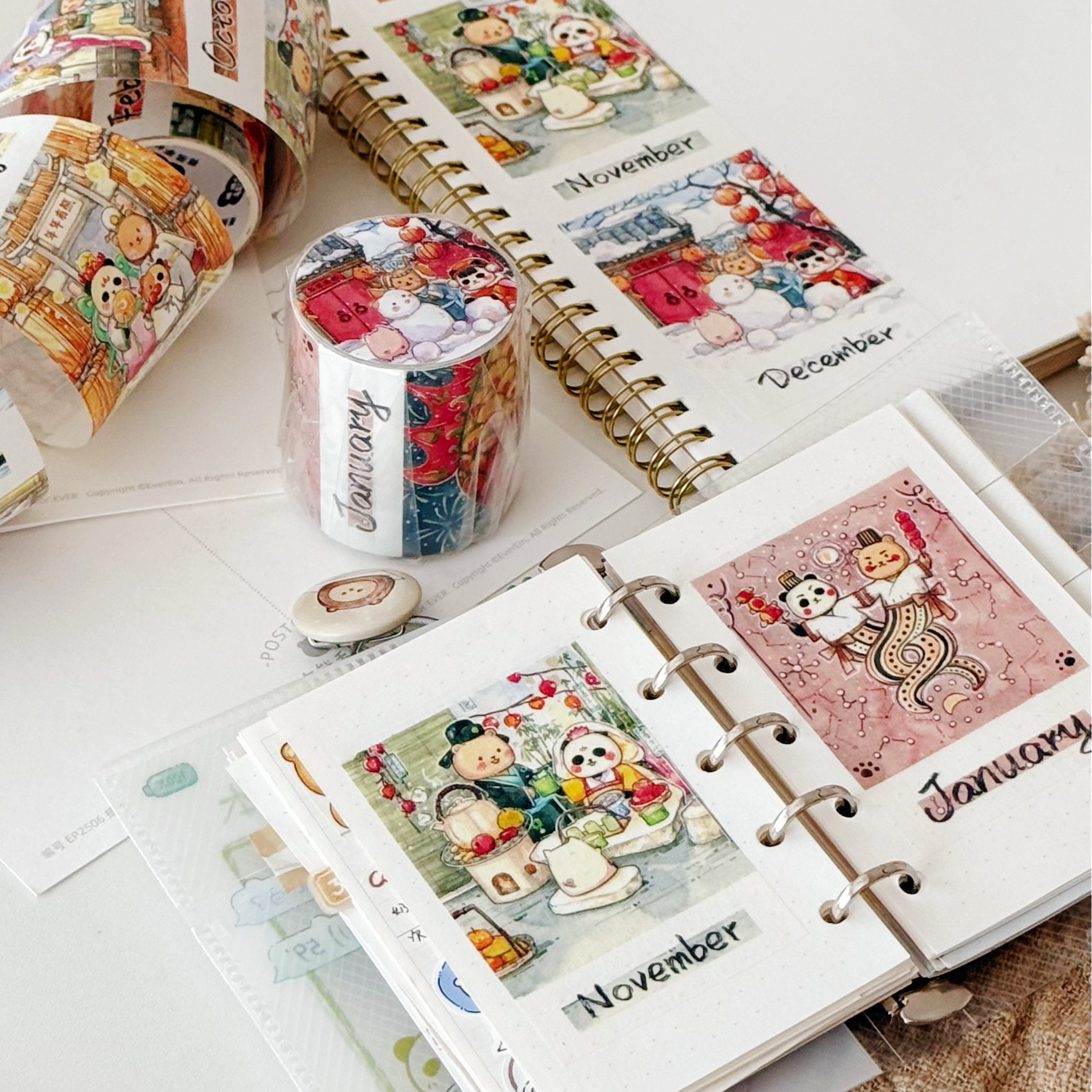 年年有熊④ 胶带手帐原创水彩国风插画和纸Pet长循环手账素材