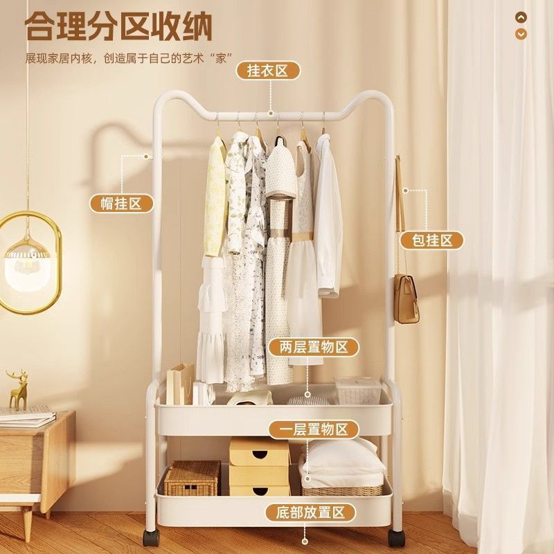 衣架落地卧室奶油风挂衣架家用铁艺简易晾衣架室内客厅移动衣帽架