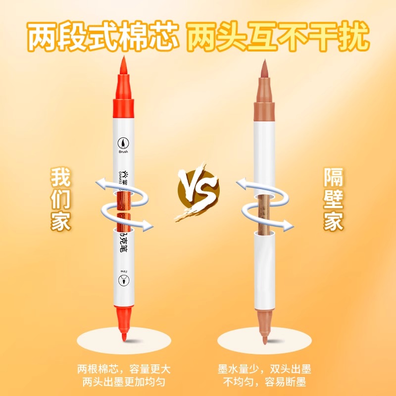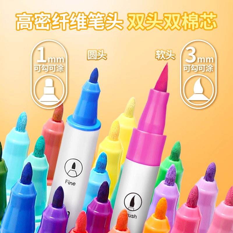 软硬双头丙烯马克笔不透色可叠色软头水彩笔初中生小学生美术专用儿童无毒可水洗画画笔48色笔芯彩色笔36细头