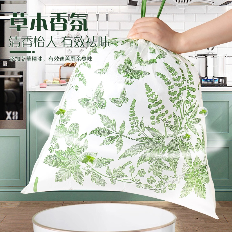 艾草味垃圾袋家用手提式加厚厨房免撕特厚抽绳大号塑料袋子办公室