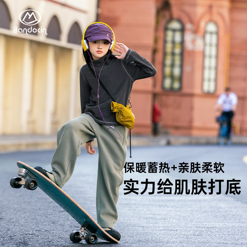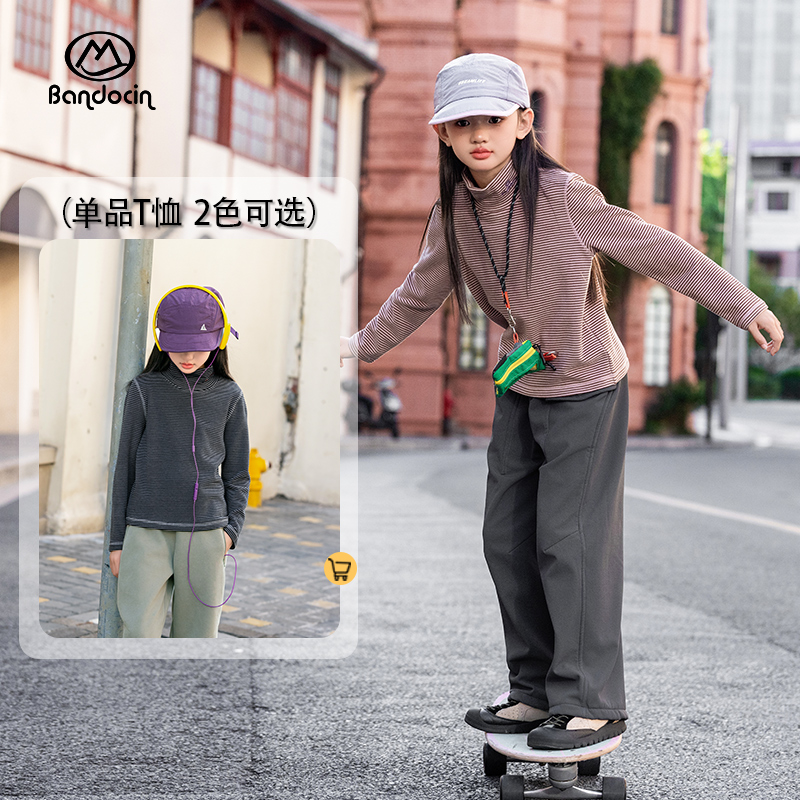 半度闲女童加厚条纹高领打底衫洋气中大童25新款儿童冬季保暖上衣