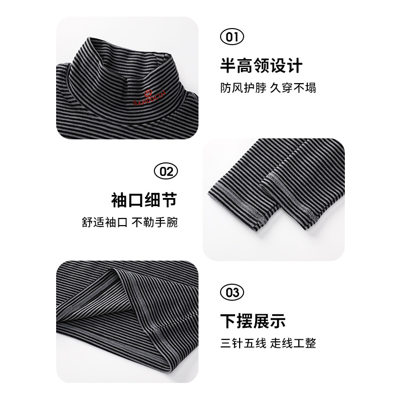 [发热]齐齐熊男童打底衫秋冬款宝宝条纹儿童半高领T恤纯色女童装