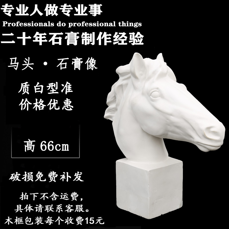 马头石膏像 美术石膏 石膏像头像 动物像 雕塑摆件 美术用品素动