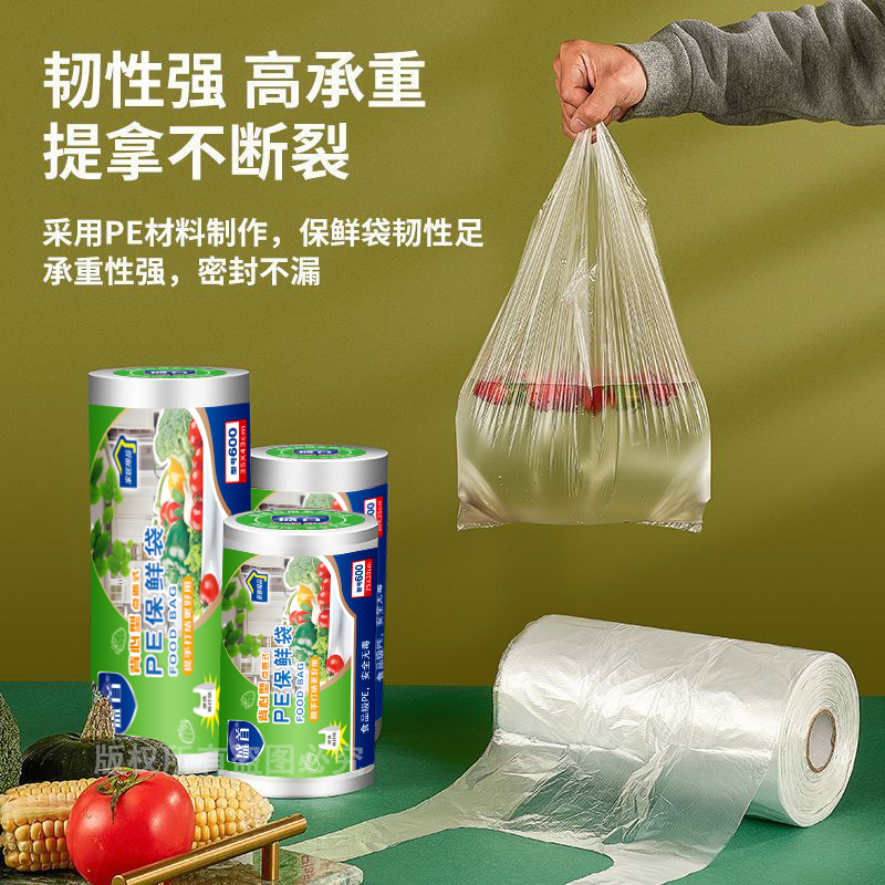 一次性保鲜袋食品级家用冰箱冷藏袋平口抽取式收纳袋加厚塑料袋子
