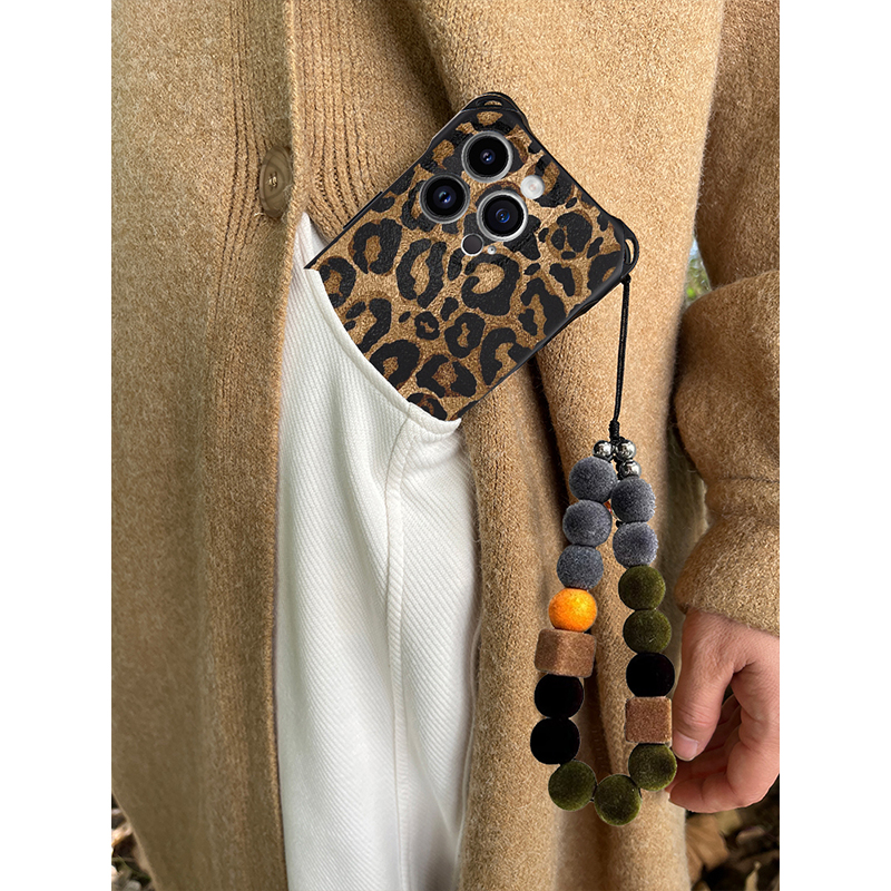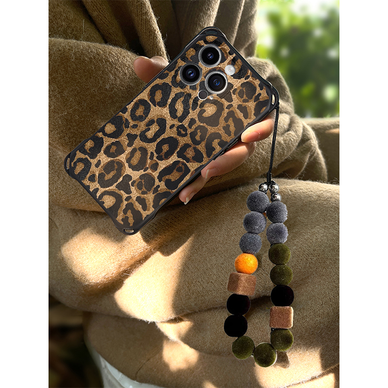 自制秋冬时髦豹纹复古四角开孔适用16ProMax手机壳15手提斜挎全包防摔软壳