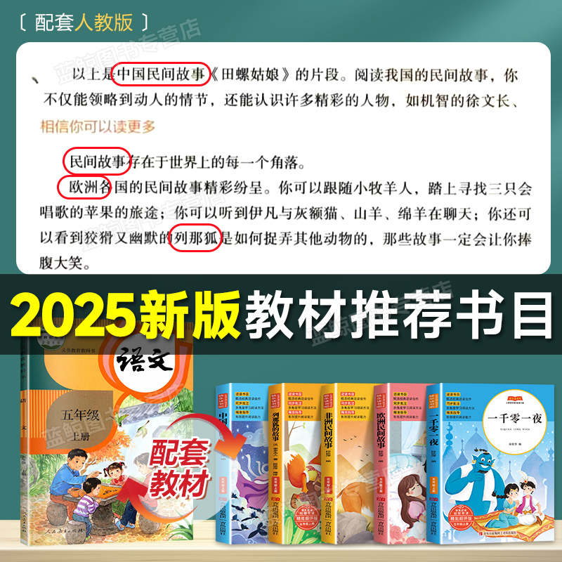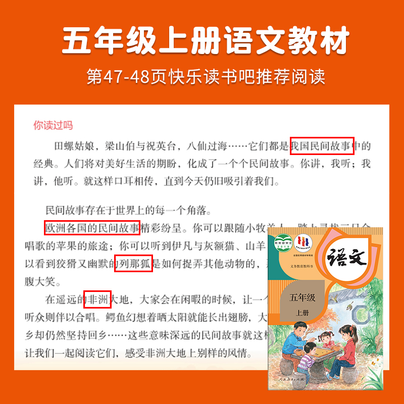 【2025新版】五年级上册快乐读书吧中国民间故事非洲欧洲列那狐的故事一千零一夜全套正版人教版语文课外阅读老师推荐必读的课外书