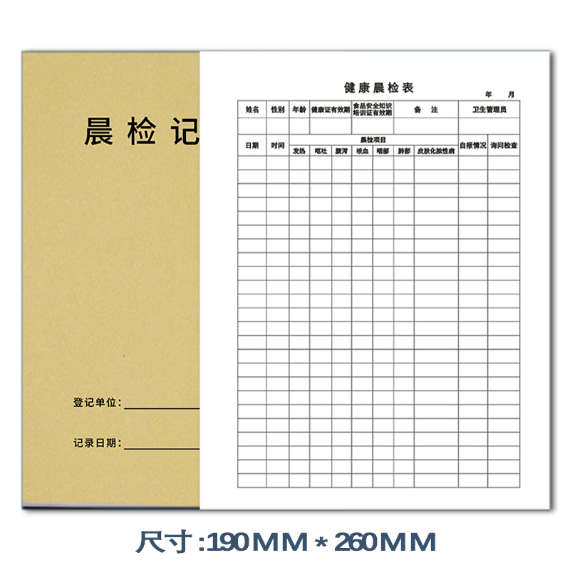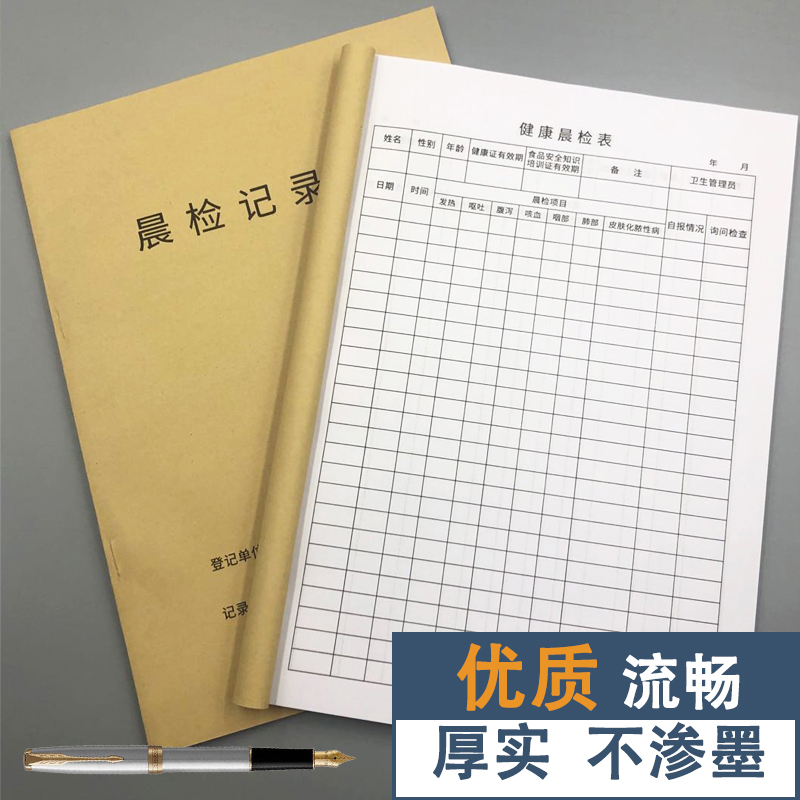 晨检记录本厨房消毒厨房餐厅酒楼从业人员健康晨检表幼儿园食堂台账食品进货台记账本餐饮台账餐具清洗消毒