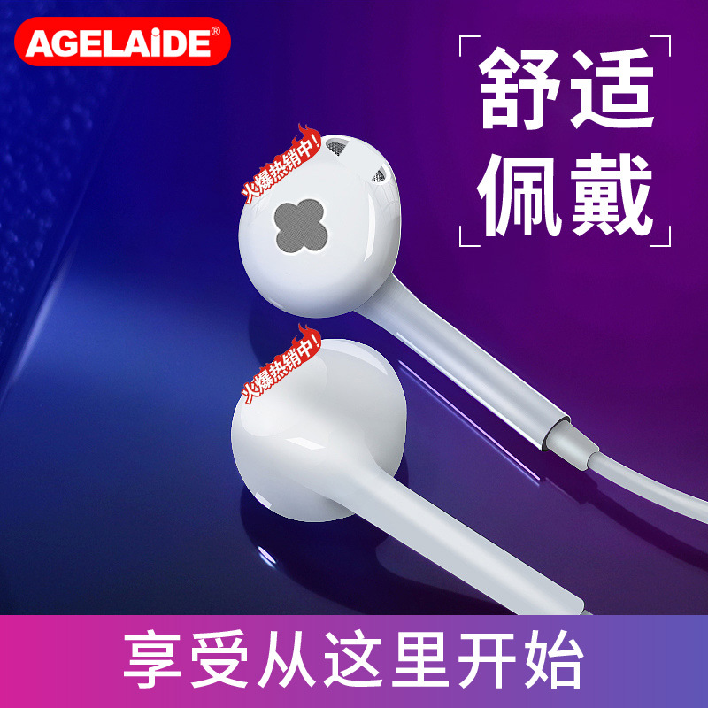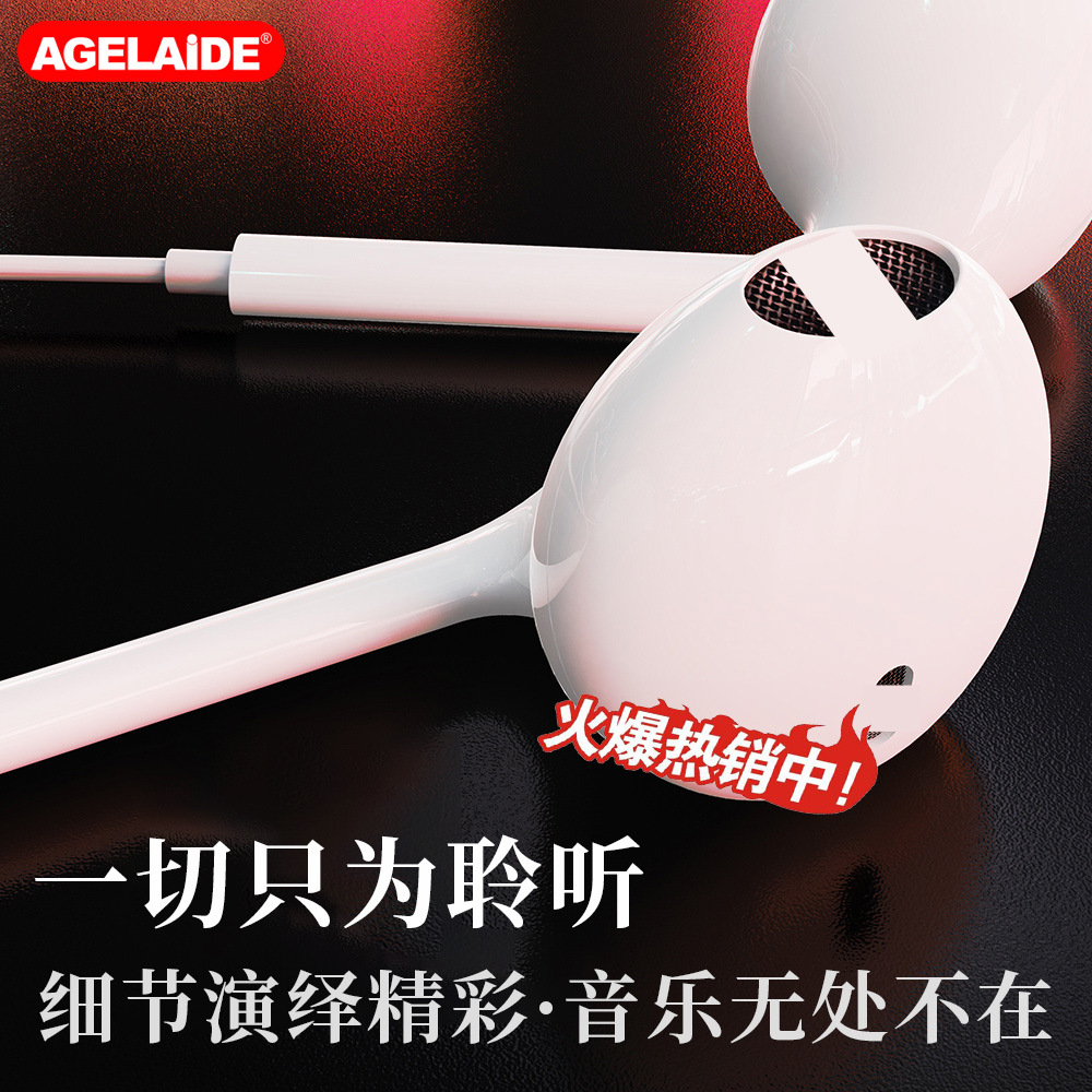 轻奢半入耳式有线耳机重低音适用苹果华为手机3.5mm线控潮玩机