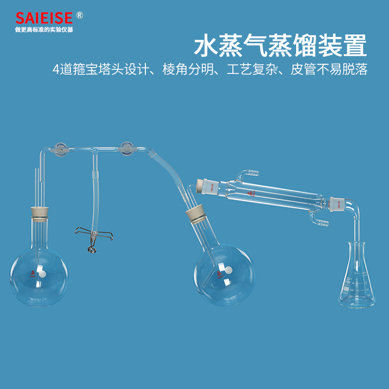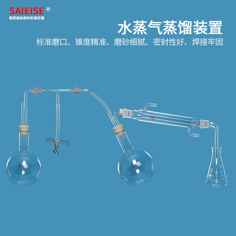 SAIEISE水蒸汽蒸馏装置 液体提纯蒸馏物 挥发提取反应器 冷凝水蒸气发生装置 物理化学实验室玻璃仪器