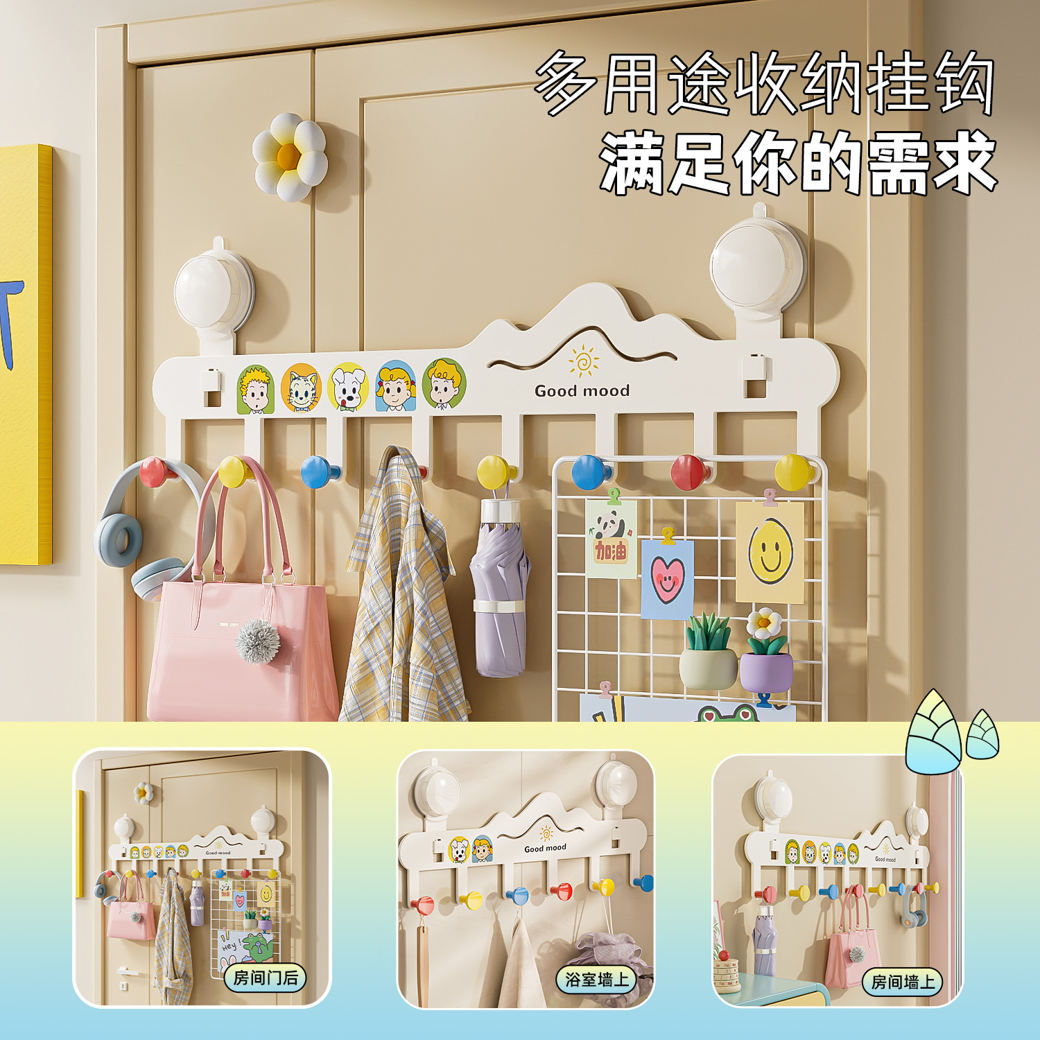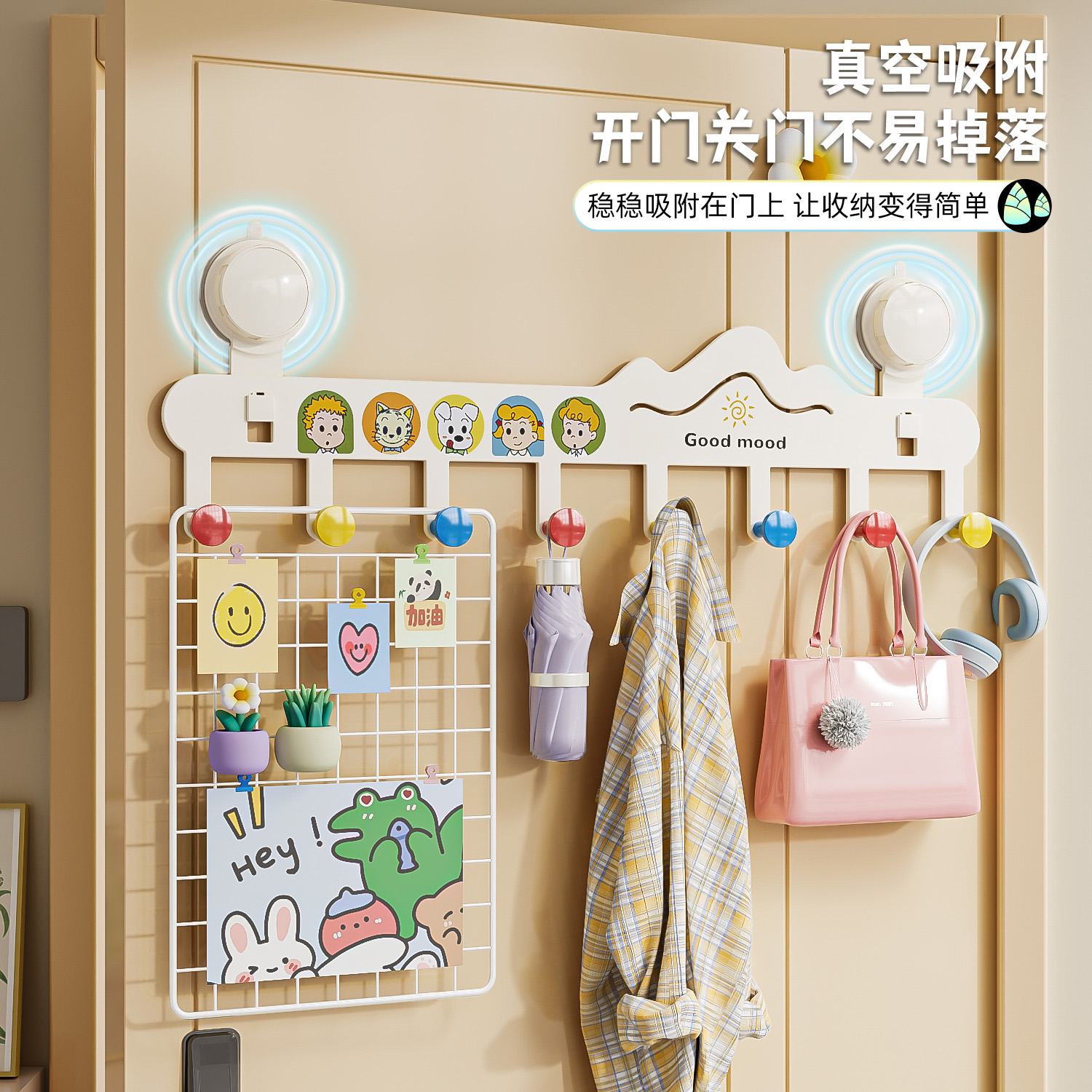 多巴胺免打孔吸盘门后挂钩旋转强力承重浴室厨房玄关卧室门后挂钩